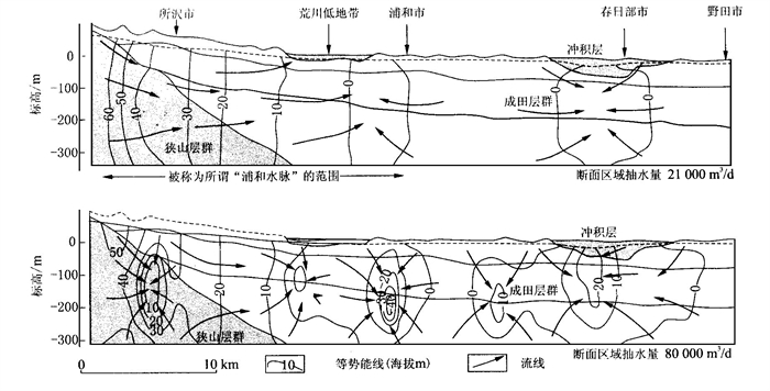 图  2  日本浦和地区地下水剖面流网图(引自文献[2])