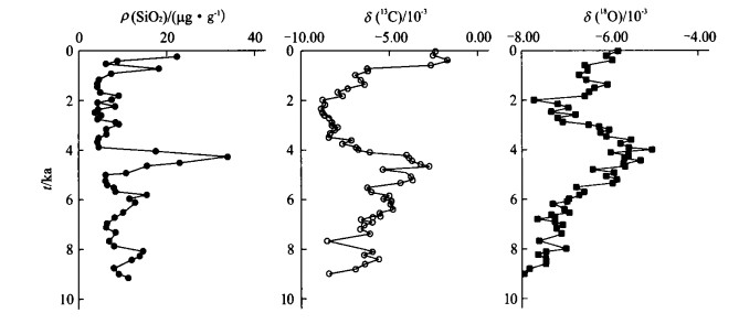 • 图  1  Z-2石笋的可溶硅和碳氧同位素记录