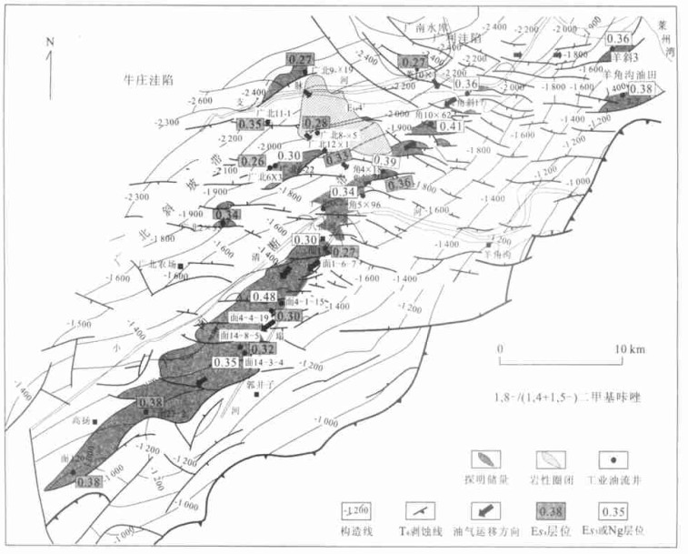 Table 1. Vertical migration effect parameters of crude oils in Bamianhe oilfield