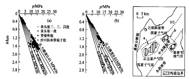 a, b为异常超压; c为异常低压.剖面位置见图 1