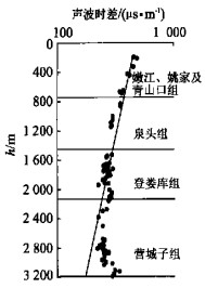图  3  十屋断陷SN10井泥岩声波时差随深度的变化