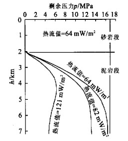 图  4  假想模型中模拟剩余压力与热流变化关系