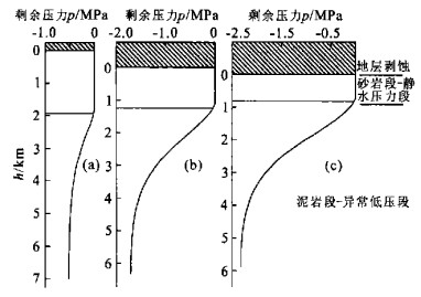 Fig.  6.  Evolutionary processes of excess pressure in the Shiwu depression