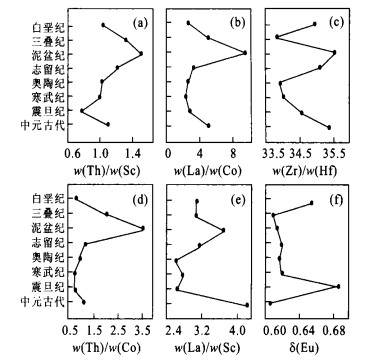 摘要: 系统分析了扬子克拉通从中元古代到白垩纪不同时代8个碎屑沉积岩的主量元素和微量元素成分.这8个样品的REE分配模式与全球典型细粒碎屑沉积岩PAAS、NASC、ES及全球平均大陆上地壳一致.志留纪—泥盆纪样品以高w (La) /w (Co)、w (La) /w (Sc)、w (Th) /w (Co)、w (Th) /w (Sc) 比值为特征, 物源上表现出北秦岭的特征, 表明扬子克拉通曾与华北克拉通南缘的北秦岭在志留纪—泥盆纪对接.Abstract: The North China and Yangtze cratons, the most important tectonic units of China, finally coalesced via collision with the formation of the E-W-trending Qinling Mountains. The North Qinling and South Qinling belts constitute the southern active margin of the North China craton and northern China passive margin of the Yangtze craton, respectively. Both the North China and Yangtze cratons and the North Qinling belt, characterized by a relatively uniform, non-evolutionary composition of clastic sediments in post-Archean La-Th-Sc-Co system, can be distinguished from each other in provenance in terms of La/Co, La/Sc, Th/Co, Th/Sc ratios. Systematic chemical compositions are analyzed (by ICP-MS ELAN 6100 DRC) for Cretaceous to Meso-Proterozoic sediments from the Yangtze craton. The REE patterns of these clastic sedimentary rocks are similar to those of the global typical sedimentary rocks such as PAAS, NASC, ES and the global upper continental crust (UC).The Silurian and Devonian pelites are characteristic of North Qinling belt with high La/Co, La/Sc, Th/Co, Th/Sc ratios. The value of δ (Eu) is sensitive to the mafic material. When the mafic material become a kind of provenance, the value of δ (Eu) changes from 0.61-0.62 to 0.68-0.69, showing that the Yangtze craton accreted to the North Qinling on the southern margin of North China cratons in the Silurian-Devonian period.