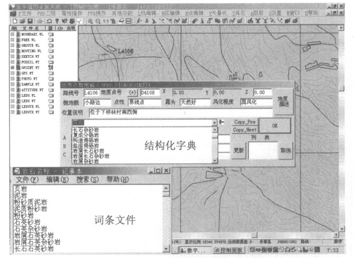 摘要: PRB数字地质填图前期数据准备包括软硬件准备、地形图数值化、前人资料的收集和室内录入、多元数据的叠加和整合、PRB过程字典库的编制等方面.PRB过程字典库由结构化字典、填缺式字典和描述性字典3部分组成.结构化字典和填缺式字典可直接查询, 为1~1.5级字典, 描述性字典为2级字典, 需要2级查询.不同的字典类型均以文本文档的形式存在, 文件名后缀为.DIC.Abstract: Prophase data preparation for PRB digital geological mapping includes preparing softwave and hardware, numerical value of relief map, former data collecting and indoor documentation, superimposing and merging of multi-element data and the PRB dictionary editing. PRB dictionary consists of structural dictionary, filling dictionary and describing dictionary. The first two dictionaries are 1 to 1.5 level that can be directly referred to, while the other one is the 2 level dictionary which should be referred twice. The documents of different dictionaries are all text documents and the suffix of documents is DIC.