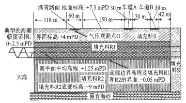 摘要: 滨海地区的地下水位由于海潮而上下波动, 这早已是为人熟知的事实.但是, 滨海地区包气带中气压也会随海潮的起伏而作周期性变化, 这一点却很少为人注意.如果地表由渗透性差的材料如水泥或沥青路面覆盖(这种情况在香港高度城市化的近海地区很常见), 海潮的起伏会产生幅度异常高的气压波动.在某些情形下, 足够高的气压会引起如路面拱起等工程问题.因此, 研究海潮引起的包气带气流, 不仅具有理论意义, 还对滨海地区土木工程有实际指导作用.以香港某滨海地区为例, 建立了该地区一剖面上水气两相流的二维数学模型, 并用TOUGH2程序进行了数值模拟.通过数值敏感度分析, 探讨了影响沥青路面下气压的主要水文地质因素.在根据该地区实际水文地质情况选取了适当的模型边界条件和模型参数后, 沥青路面下气压的数值模拟结果和观测数据吻合程度良好.