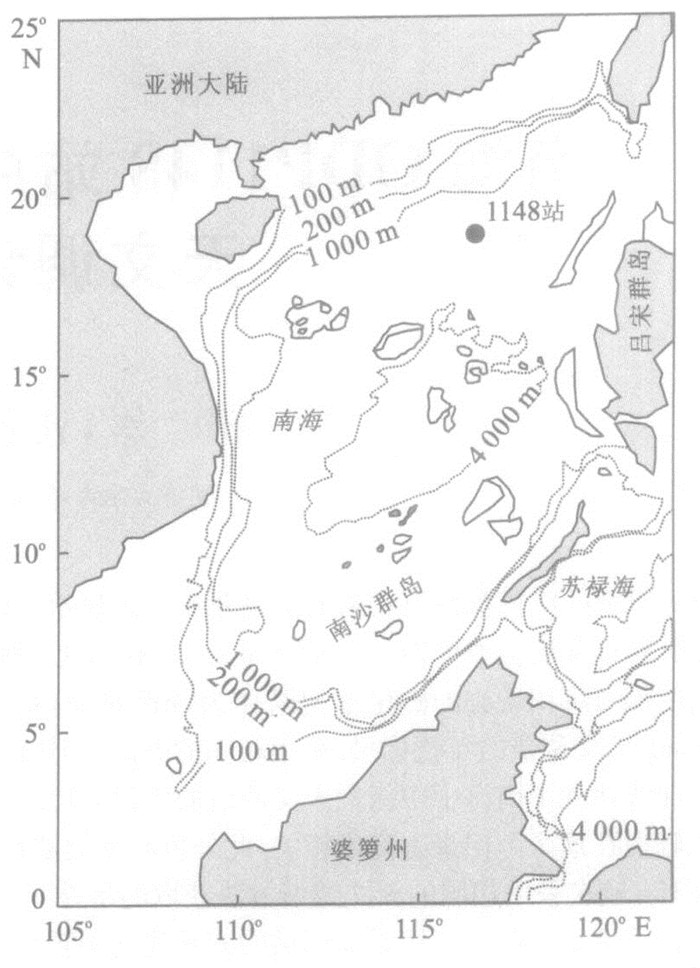 Fig.  1.  Location map of ODP site 1148 in the northernSouth China Sea