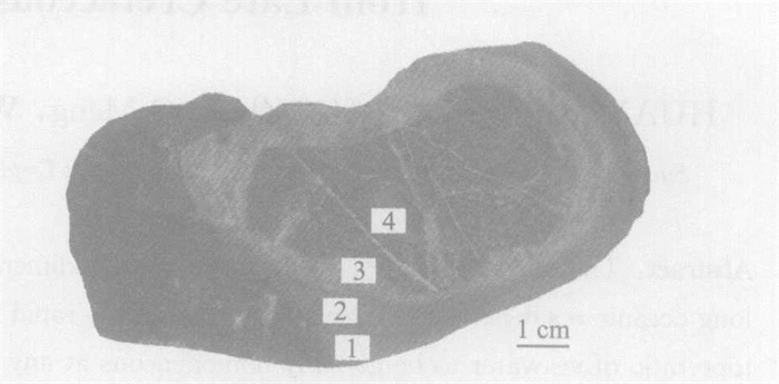 1~3.与图 2对应的厚壳蛤的不同壳层; 4.体腔充填物, 成分为微晶灰岩; 5.厚壳蛤样品周围的微晶灰岩