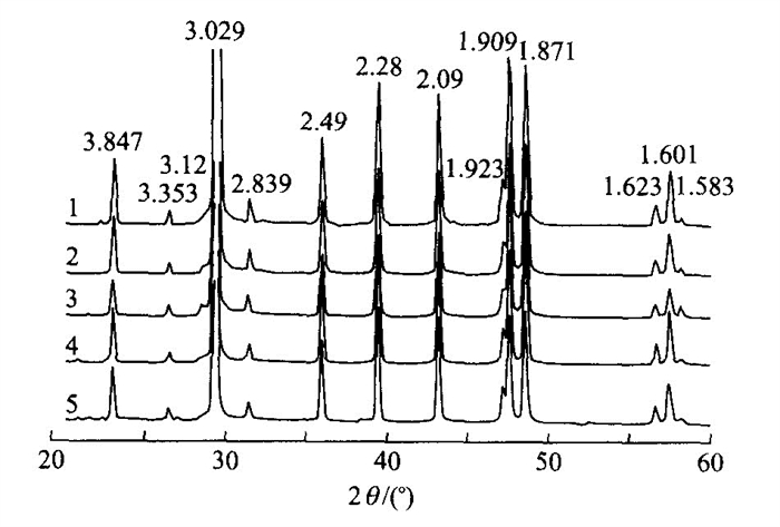 图 3 厚壳蛤不同壳层以及体腔充填物和围岩的X射线衍射曲线