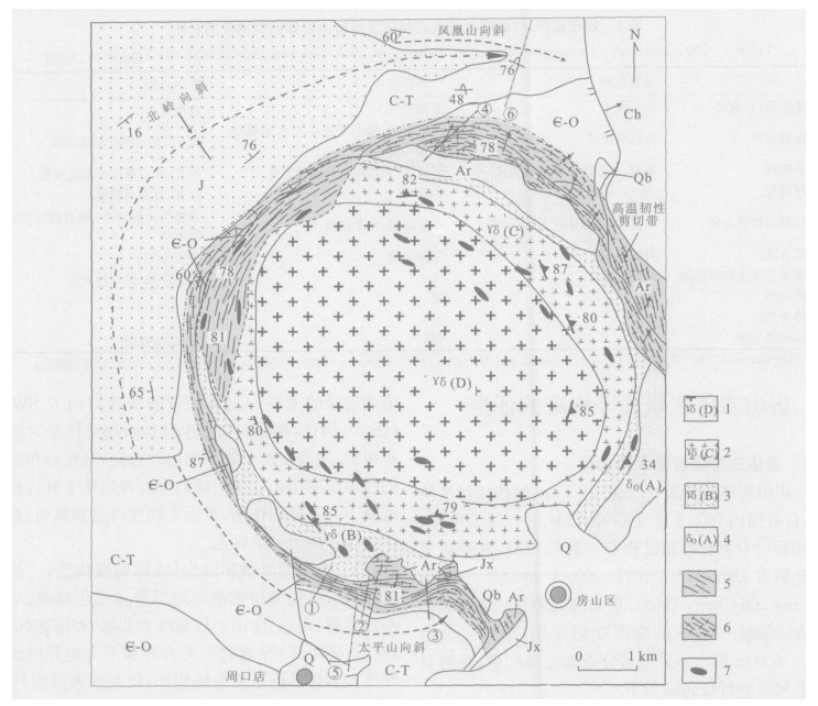 Fig.  2.  Geological and structural sketch map of Fangshan pluton in the western hills, Beijing