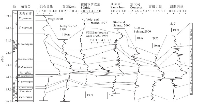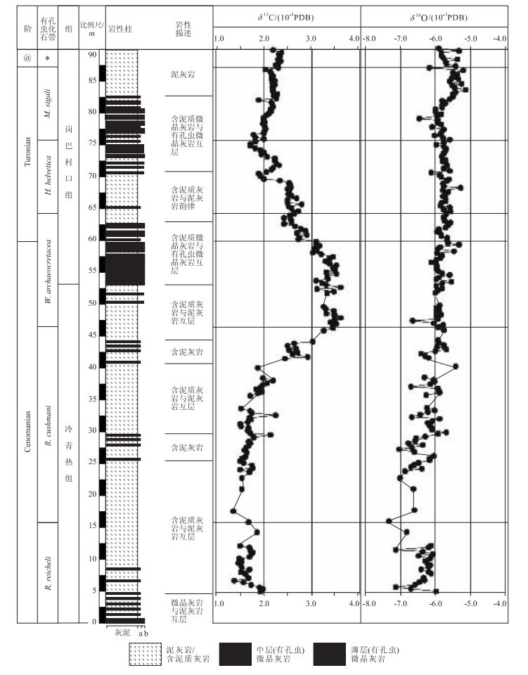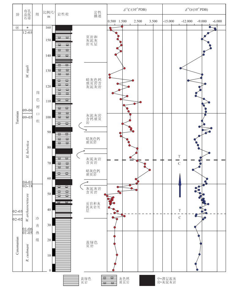 表 1 西藏定日贡扎剖面Cenomanian-Turonian期碳氧同位素比值