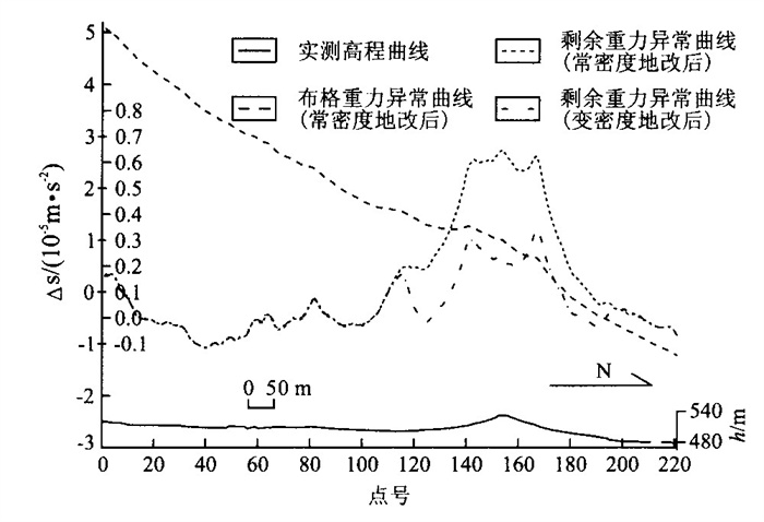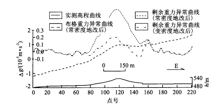Fig.  4.  Interpretation section for the residual gravity anomaly of profile 1