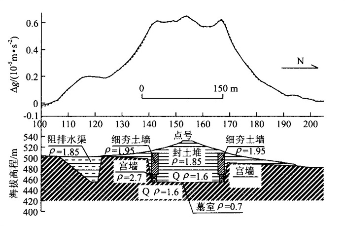 • 摘要: 秦始皇帝陵是中国历史上第一个皇帝陵, 秦始皇帝陵考古已经取得许多重大发现, 但至今秦始皇帝陵地宫是否位于现存封土堆之下等问题尚不清楚, 因此, 利用先进技术探测秦始皇帝陵地宫对于科学保护这一重要文物资源具有重要意义.应用高精度重力测量, 确定了秦始皇帝陵地宫的东西、南北开挖范围约170m×145m, 发现了地宫的西向墓道.通过对重力异常的定量拟合计算, 推测了秦始皇帝陵地宫可能存在墓室, 墓室东西长约50m, 南北宽约40m, 埋深约43m, 高约10m;地宫四周可能存在石质宫墙, 宫墙的中心线范围为145m×125m, 墙体宽8m, 高约14m;宫墙上部有一细夯土墙, 墙宽约15m, 高约30m.认为秦始皇帝陵封土堆之下经过大规模开挖存在墓室、宫墙、墓道等配套的地下古墓建筑群, 从一个侧面为证实秦始皇帝陵地宫位于现存封土堆之下提供了证据.