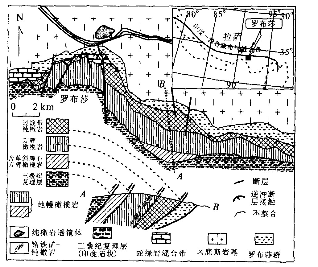 图 1 西藏罗布莎蛇绿岩的位置和地质图(据Malpas et al., 2003修改)