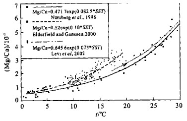 Table 1. Mg/Ca ratios and the sea surface temperatures