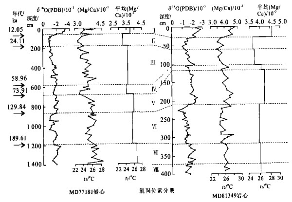 摘要: 通过对东北印度洋区MD77181和MD81349两支岩心中Globigerinoides sacculifer壳体极为精细的清洗和溶样后, 由ICP-MS测试获得了近260 ka以来Mg/Ca值.结果表明Mg/Ca值与δ18O值变化趋势较为吻合, 随温度的增加而升高, 浮游有孔虫G.sacculifer壳体Mg/Ca值是海洋表层水温(SST)良好的替代性指标.运用函数式Mg/Ca=0.471 7 exp (0.082 5 * SST)计算表明, 包括印度洋在内的中、低纬地区, LGM时期的SST与全新世的温差大于最初CLIMAP推测的2℃, 很可能达到4℃.