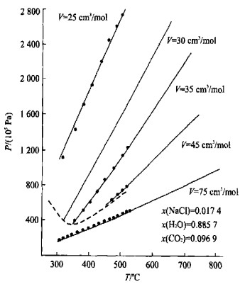 Sterner, S., Bodnar, R., 1991. Synthetic fluid inclusions. X: Experimental determination of P-V-T-x properties in the CO2-H2O system to 6 kb and 700 ℃. Amer. J. Sci. , 291: 1-54. doi: 10.2475/ajs.291.1.1