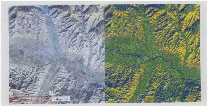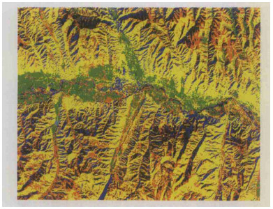 摘要: 决策树理论在遥感分类中, 分类准确、高效.依据其理论方法, 对青海省民和地区的遥感数据———ETM + (enhanced thematic mapper plus) 进行了分类, 选用的ETM +数据为1999年10月份数据, 数字高程(DEM) 数据来自于1:2 5万民和幅地形图, 数据格式为MapInfo通用格式MIF, 数据进行了坐标转换(地理坐标), 对原始数据进行了处理, 从等高线中提取数字高程.对遥感数据进行地形及光照矫正, 计算植被因子及缨帽变换的3个分量, 同其他5个遥感波段结合形成原始分类图层, 同时确定目标分类结果.原始数据的采样基于目视, 首先采用不同的彩色合成方案突出不同的目标地物, 交互式进行采样, 使用IDL语言编制程序从原始数据中提取地物数字信息, 使用Clementine7.2对数据进行处理, 其中10 %的采样数据验证模型准确率, 其余数据用来推算模型, 对数据进行10次迭代, 同时给予75 %的剪枝, 得到区分不同地物(如红层、黄土等) 的最合适图层(band 1 & band 3)和具体数值, 形成决策树模型, 将决策树模型导入Envi4.0中, 对原始数据(9个图层) 进行计算形成初步分类结果图, 对初步分类结果图进行一定的碎片合并, 最终形成分类结果图.该图同1:2 5万地质图进行对比确认分类的效果, 同传统分类图比较确认决策树分类方法优于传统分类.另外来自于决策树所提取的信息, 有利于地学知识的归纳总结Abstract: The decision tree is an effective and accurate method in remote sensing classification. We use this method to classify the remote sensing data-ETM+ (enhanced thematic mapper plus), which covers most of the area of Minhe County, Qinghai Province. The acquisition date of ETM+ is October 29, 1999. We get digital elevation model (DEM) data from (1:) 250 000 topography map of Minhe area. The format of DEM is MapInfo exchange format *.mif which converted to (geography) coordinate. After primary treatment of the raw data, the DEM data is derived from the contour line. The ETM+ scenes are rectified using the DEM and sun-illumination model. NDVI and other three indexes from Tasseled Cap transform were calculated from RS data. All these indexes are stacked with five RS bands. The target objects are selected. The sampling of the target object is based on visual observation. First, false color composed imagery is essential, and the sampling process is interactive. The digital information of the target object is derived from the program, which compiled by IDL. The decision tree model was calculated by Clementine7.2 software suite. About 10% raw data were used to validate the accuracy of the model. Meantime others were used to build the model. Ten iterative numbers and 75% trim radio are the suit parameters for this model. Then we get the most suitable layer and numerical value for distinguishing different target objects. For instance, distinguishing Tertiary red clastic and loess's best layer is band 1 and band 3. In the next step, we import the model to Envi 4.0 and classify the raw data into different target objects. After some basic treatments, for example clump and (assign) class color, we get the final result map. The map is contrasted with 1:250 000 geology map of Minhe area and achieved the accuracy of classification. The result is that the decision tree method is better than traditional classify methods. Another conclusion is that the rules from decision tree could help geologists to gain a appropriate geological conclusion.