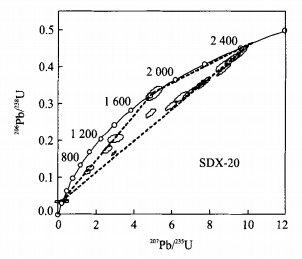 表 1 北苏鲁烟台南桃林花岗片麻岩(SOX-20)锆石SHRIMP U-Pb定年数据