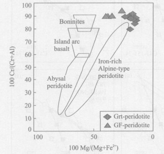 Table 4. Representatives of garnet composition from the garnet peridotite in Zhimafang