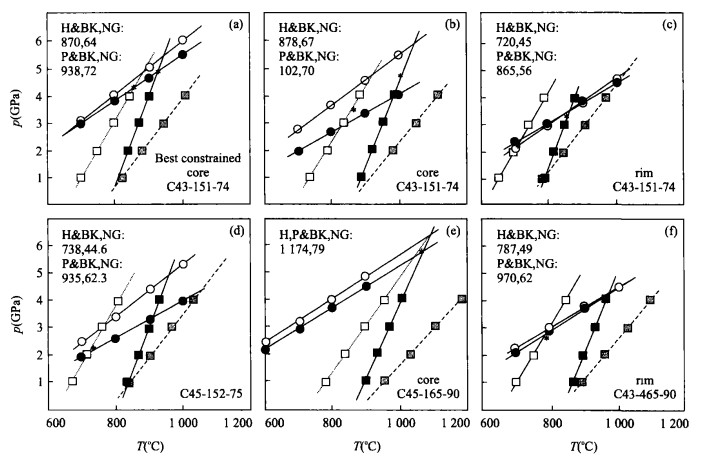 表 6 CCSD-PP1石榴石橄榄岩的变质温压条件计算