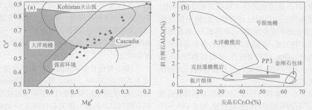 Abe, N., Arai, S., Saeki, Y., 1992. Hydration processes in the arc mantle: Petrology of the Megata peridotite xenoliths, the northeast Japan arc. Jour. Min. Petr. Econ. Geol. , 87: 305-317. doi: 10.2465/ganko.87.305 Arai, S., 1991. The Circum-Izu Massive peridotite, central Japan, as back-arc mantle fragments of the Izu-Bonin arc system. In: Peters, T. j., Nicolas, A., Coleman, R.G., eds., Ophiolite genesis and evolution of the oceanic lithosphere. Kluwer, Dordrecht, 807-822. Arai, S., 1992. Chemistry of chromium spinel in volcanic rocks as a potential guide to magma chemistry. Mineralogical Magazine, 56: 173-184. doi: 10.1180/minmag.1992.056.383.04 Arai, S., 1994. Characterization of spinel peridotites by olivinespinel compositional relationships: Review and interpretation. Chemical Geology, 113: 191-204. doi: 10.1016/0009-2541(94)90066-3 Arai, S., Okada, H., 1991. Petrology of serpentine sandstone as a key to tectonic development of serpentine belts. Tectonophysics, 195: 65-81. doi: 10.1016/0040-1951(91)90144-H Barnes, S.J., Roeder, P.L., 2001. The range of spinel compositions in terrestrial mafic and ultramafic rocks. J. Petrol. , 42: 2279-2302. doi: 10.1093/petrology/42.12.2279 Bloomer, S.H., Fisher, R.L., 1987. Petrology and geochemistry of igneous rocks from the Tonga Trench—A nonaccreting plate boundary. Journal of Geology, 95: 469-495. doi: 10.1086/629144 Chen, S.Z., Yang, J.S., Xu, Z.Q., et al., 2005. Petrology and mineralogy of PP3 ultramafic rocks in Sulu UHP belt and its significance. Acta Petrologica Sinica, 21(2): 369-380 (in Chinese with English abstract). Cookenboo, H.O., Bustin, R.M., Wilks, K.R., 1997. Detrital chromium spinel compositions used to reconstruct the tectonic setting of provenance: Implications for orogeny in the Canadian Cordilera. Journal of Sedimentary Research, 67: 116-123. Dick, H.J.B., Bullen, T., 1984. Chromium spinel as a petrogenetic indicator in abyssal and Alpine-type peridotites and spatially associated lavas. Contribution to Mineralogy and Petrology, 86: 54-76. doi: 10.1007/BF00373711 Evans, B.W., Frost, B.R., 1975. Chrome-spinel in progressive metamorphism— A preliminary analysis. Geochimica et Cosmochimica Acta, 39: 957-972. Green, D.H., Ringwood, A.E., 1967. The stability fields for aluminous pyroxene peridotite and garnet peridotite and their relevance in upper mantle structure. Earth Planet. Sci. Letters, 3: 151-160. doi: 10.1016/0012-821X(67)90027-1 Guillot, S., Hattori, K.H., Sigoyer, J.D., et al., 2001. Evidence of hydration of the mantle wedge and its role in the exhumation of eclogites. Earth and Planetary Science Letters, 193: 115-127. doi: 10.1016/S0012-821X(01)00490-3 Irvine, T.N., 1965, Chrome spinel as a petrogenetic indicator. Part Ⅰ. Theory. Can. Jour. Earth Science, 2: 648-674. doi: 10.1139/e65-046 Ishii, T., 1987. Seamounts and oceanic islands: Their classification, vertical movements and histories. Earth Monthly, 9: 542-549(in Japanese). Kepezhinskas, P., McDermott, F., Defant, M. J., et al., 1997. Trace element and Sr-Nd-Pb isotopic constraints on a three-component model of Kamchatka arc petrogenesis. Geochim. Cosmochim. Acta, 61: 577-600. doi: 10.1016/S0016-7037(96)00349-3 Kepezhinskas, P.K., Defant, M.J., 1997. Progressive enrichment of island arc mantle by melt-peridotite interaction inferred from Kamchatka xenoliths. Geochim. Cosmochim. Acta, 60: 1217-1229. Klemme, S., 2004. The influence of Cr on the garnet-spinel transition in the Earth's mantle: Experiments in the system MgO-Cr2O3-SiO2and thermodynamic modelling. Lithos, 77(1-4): 639-646. doi: 10.1016/j.lithos.2004.03.017 Lee, Y.I., 1999. Geotectonic significance of detrital chromian spinel: A review. Geosciences Journal, 3(1): 23-29. doi: 10.1007/BF02910231 Nixon, P. H., 1987. Mantle xenoliths. Wiley, New York, 844. Ozawa, K., 1994. Melting and melt segregation in the mantle wedge above a subduction zone: Evidence from the chromite-bearing peridotites of the Miyamori ophiolite complex, northeastern Japan. J. Petrology, 35: 647-678. doi: 10.1093/petrology/35.3.647 O'Neill, H. St. C., 1981. The transition between spinel lherzolite and garnet lherzolite, and its use as a geobarometer. Contributions to Mineralogy and Petrology, 77: 185-194. doi: 10.1007/BF00636522 Pearce, J.A., Barker, P.F., Edwards, S.J., et al., 2000. Geochemistry and tectonic significance of peridotites from the South Sandwich arc-basin system, South Atlantic. Contrib. Mineral. Petrol. , 139: 36-53. doi: 10.1007/s004100050572 Press, S., 1986. Detrital spinels from alpinotype source rocks in Middle Devonian sediments of the Rhenish massif. Geologische Rundschau, 75: 333-340. doi: 10.1007/BF01820615 Roeder, P., 1974. The crystallization of spinel from basaltic liquid as a function of oxygen fugacity. J. Geol. , 82: 709-729. doi: 10.1086/628026 Roeder, P.L., 1994. Chromite: From the fiery rain of chondrules to the Kilauea Iki lava lake. Can. Mineral. , 32: 729-746. Roeder, P.L., Campbell, I.H., 1985. The effect of postcumulus reactions on composition of chrome-spinels from the Jimberlana intrusion. Journal of Petrology, 26(3): 763-786. doi: 10.1093/petrology/26.3.763 Widom, E., Kepezhinskas, P., Defant, M., 2003. The nature of metasomatism in the sub-arc mantle wedge: Evidence from Re-Os isotopes in Kamchatka peridotite xenoliths. Chemical Geology, 196: 283-306. doi: 10.1016/S0009-2541(02)00417-5 Wood, B.J., Virgo, D., 1989. Upper mantle oxidation state: Ferric iron contents of harzburgite spinels by 57Fe Mossbauer spectroscopy and resultant oxygen fugacities. Geochim. Cosmochim. Acta, 53: 1277-1291. doi: 10.1016/0016-7037(89)90062-8 Yang, J.S., Chen, S.Z., Zhang, Z.M., et al., 2005. A preliminary study of the Chinese Continental Scientific Drilling (CCSD)PP3 hole on the Gangshang garnet peridotite body in the Sulu UHPM belt. Acta Petrologica Sinica, 21(2): 293-304(in Chinese with English abstract). Yang, J.S., Xu, Z.Q., Pei, X.Z., et al., 2002. Discovery of diamond in North Qinling: Evidence for 