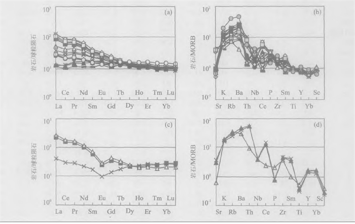 表 1 常量元素(%)、稀土元素(10-6) 和微量元素(10-6) 化学分析结果