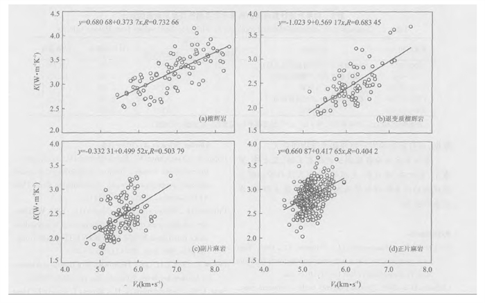 表 1 不同岩石热导率K和纵波速度Vp的回归分析结果