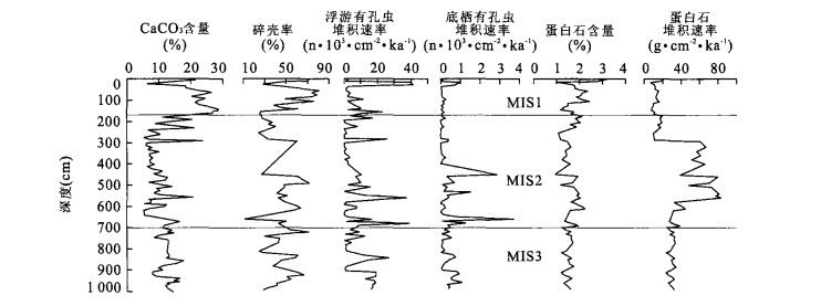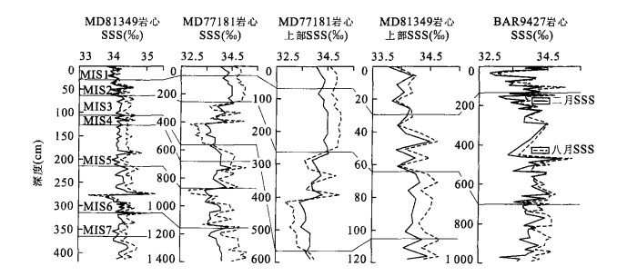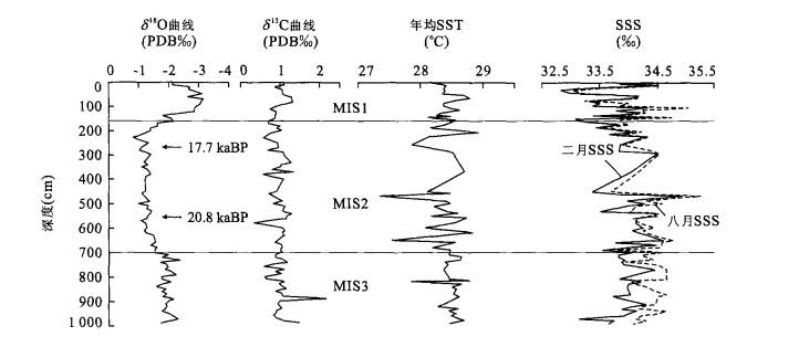 摘要: 末次冰期旋回尤其是氧同位素3期气候明显不稳定, 南亚季风活动并不遵循冰期间冰期的规律.通过东北印度洋区位于安达曼海南部、苏门答腊岛西北端格雷特海峡的BAR9427岩心的古海洋学研究, 并与相邻孟加拉湾地区的MD77181和MD81349二支岩心进行对比分析, 认识到末次冰期氧同位素2期时, 研究区东北冬季风增强, 上升流活跃, 古生产力较高, 同时近岸地区蒸发作用强烈, 海水盐度升高.末次冰期大间冰阶氧同位素3期的早、晚期, 研究区西南夏季风活动强烈, 向东的西南季风流, 使得孟加拉湾中部盐度升高, 而北部由于季风降雨, 大量的淡水输入使得盐度大幅度下降, 且八月盐度远低于二月.西南夏季风变化遵循23ka的岁差周期, 在我国青藏高原、黄土与沙漠以及阿拉伯海等区都有表现.Abstract: The climate was obviously instable in the last glacial cycle, especially in the Marine Oxygen Isotope Stage 3. The South Asian monsoon activities conflict with the glaciation and interglaciation rule. The paleo ceanographic study of the core BAR9427 from the south of the Andaman Sea, the Great Strait at the northwest terminal of the Sumatra Island in the northeast Indian Ocean, and its comparison with that of the nearby cores MD77181 and MD81349 in the Bay of Bengal, reach the following conclusions: the northeastern monsoon was strong in intensity with the active upwelling and the relatively high paleoproductivity over the studied area in the MIS 2 of the last glaciation. Meanwhile, the sea surface salinity increased due to the strong evaporation near the shore region. The southwestern monsoon was strong over the studied area in the early and late MIS 3. The easterly southwestern monsoon current increased the salinity in the middle of the Bay of Bengal. However, the salinity decreased greatly in the north of the Bay of Bengal because of both the monsoon rain and the influx of a mass of fresh water. In addition, the salinity was lower in August than in February. The southwestern monsoon activities follow the 23 ka precession cycle, a phenomenon also discovered in the Tibetan plateau, the loess and desert fields of China, and the Arabian Sea.