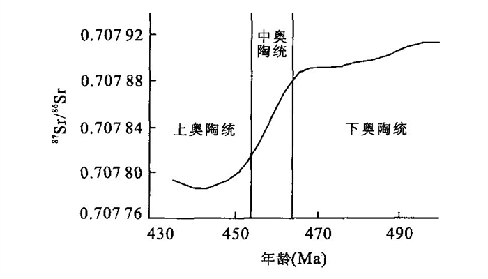 图 4 奥陶纪海水Sr同位素演化曲线