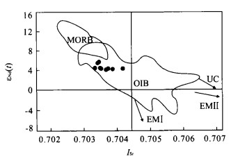 Abstract: Isotopic ratios of Sr, Nd and Pb were analyzed for the Permian volcanic rocks in the Zhiduo and Zaduo areas of southern Qinghai which is located at the Qamdo block. The analytical results of the sample rocks are as follows: ISr = 0.703 33 -0.704 17, εNd(t) =4.1-5.5, 206Pb/204Pb=17.547-17.986, 207Pb/204Pb=15.476-15.584, 208Pb/204Pb= 37.778-37.976. Combined with lithological and geochemical research findings, the above results indicate that the volcanic rock is of OIB type and came into formation in the stretching rift tectonic environment. It falls into the Late Palaeozoic rift system of the Qinghai-Tibet Plateau and its adjacent areas. The primitive magma might have originated from the deplected asthenosphere and the continental breakup is related to the activity of mantle plume. With the V1 and V2 of the lead isotopic ratios ranging from 31.39 to 46.78, 22.38 to 42.45 respectively, the lead isotope of the rock samples can be labeled the Yangtze lead isotopes, which indicates that the Qamdo block belonged to Tethyan realm during Late Palaeozoic and was a part of the Pan-Cathaysian continental group or Yangtze Plate.-