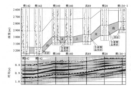摘要: 滩坝砂岩具有砂泥互层、单砂层厚度薄、并含有灰质白云质等高速夹层等特点, 这些因素增大了滩坝砂岩储层的地震识别及预测难度.根据滩坝砂的实际岩性组合类型, 用波形分析法对东营凹陷西部地区沙-4上亚段滩坝砂岩进行了储层预测.首先对滩坝砂岩常见的3类地震波形进行定义, 建立了不同类型滩坝砂岩储层地震波形特征的实际正演模型; 通过学习型地震波形预测技术, 分析了不同岩性组合的地震波形特征, 总结了波形模式与地层组合样式之间的关系; 最后利用实际井资料作为约束对研究区地震波形进行了分类区划, 明确了滩坝砂岩有利储层发育范围.Abstract: Beach-bar reservoirs are characterized by sand-mud interlayering, thin sand strata, and high seismic velocity of carbonate interbeds, which increases the difficulty of seismic interpretation and reservoir prediction. Based on the lithologic combination of the beach-bar sand of Es4s in the western Dongying sag, seismic "waveform" analysis was applied to its reservoir prediction. Firstly, we defined three dominate types of the waveform of the beach-bar sand and established the actual seismic forward models for different lithological combinations of beach bar reservoir. Then, by studying actual seismic forward model, the waveform characters of different lithologic combinations were analyzed. Relationships between the waveform modes and the different lithologic combinations were generalized as well. In the end, the seismic waveforms were classified by restriction of logging data, and the scope of beneficial beach-bar reservoir was defined.