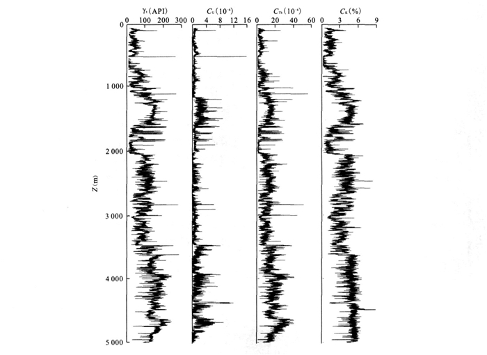 摘要: 为了认识江苏东海超高压变质带上地壳岩石自然放射性的垂向分布特征, 榴辉岩退变质程度对放射性元素浓度的影响, 以及放射性产热率对地温梯度的影响, 利用中国大陆科学钻探(CCSD) 主孔100~5000m自然放射性测井(自然伽马和自然伽马能谱) 资料统计了CCSD主孔各类岩石的自然放射性强度和铀、钍、钾元素的浓度, 计算出产热率曲线.自然伽马, 铀、钍、钾浓度和产热率从蛇纹岩到榴辉岩、角闪岩、副片麻岩、正片麻岩依次增大.随着榴辉岩退变质程度的增强, 其铀、钍、钾元素的浓度值逐渐增大.CCSD主孔自然放射性的垂向分布特征主要受岩性控制, 自然放射性随深度增加有增强趋势.产热率与自然伽马测井值之间有很好的线性关系, 在高放射性岩层的上部, 地温梯度会出现较强扰动和低值异常.