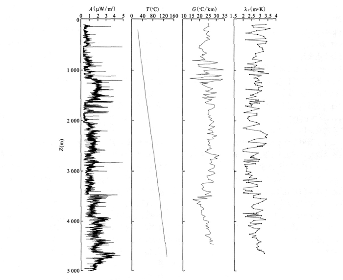 Bücker, C., Rybach, L., 1996. Asi mple method to determineheat production from gamma-ray logs. Marine and Petroleum Geology, 13 (4): 373-375. doi: 10.1016/0264-8172(95)00089-5 Chen, S. Z., Yang, J. S., Xu, Z. Q., et al., 2006. Transformation of chromiumspinel and garnet: Evidence of CCSD-PP3ultramafic rocks processed UHP metamorphism. Earth Science—Journal of China University of Geosciences, 31 (4): 475-487 (in Chinese with English abstract). Chi, Q. H., Yan, M. C., 1998. Radioactive elements of rocksin North China platform and the thermal structure andtemperature distribution of the modern continental lithosphere. Acta Geophysics Sinica, 41 (1): 38-48 (in Chinese with English abstract). Chiozzi, P., Pasquale, V., Verdoya, M., 1998. Ground radiometric survey of U, Th and K on the Lipari Island, Italy. Journal of Applied Geophysics, 38 (3): 209-217. doi: 10.1016/S0926-9851(97)00035-9 Cong, B. L., Wang, Q. L., Zhai, M. G., et al., 1994. UHPmetamorphic rocks in the Dabie-Sulu region, China: Their formation and exhumation. Island Arc, 3: 135-150. doi: 10.1111/j.1440-1738.1994.tb00103.x Hawkesworth, C. I., 1974. Vertical distribution of heat production in the basement of the eastern Alps. Nature, 249: 435-436. doi: 10.1038/249435a0 He, L. J., Hu, S. B., Yang, W. C., et al., 2006. Temperature measurement in the main hole of the Chinese Continental Scientific Drilling. Chinese Journal of Geophysics, 2006, 49 (3): 745-752 (in Chinese with English ab-stract). Liu, F. L., Xu, Z. Q., Xue, H. M., et al., 2005a. Ultrahigh-pressure mineral inclusions preserved in zircons separated fromeclogite and its country-rocks in the main drillhole of Chinese Continental Scientific Drilling project (0-4500m). Acta Petrologica Sinica, 21 (2): 277-292 (in Chinese with English abstract). Liu, F. L., Xu, Z. Q., Yang, J. S., et al., 2005b. Geochemical characteristics and genetic mechanism of orthgneiss and paragneiss in the depth intervals of 2000-3000m from main drill hole of Chinese Continental Scientific Drilling project. Acta Petrologica Sinica, 21 (2): 305-324 (in Chinese with English abstract). Liu, S. B., 2005. Geothermal resources and its exploitation and reserve. Chemistry Industry Press, Beijing, 82-87 (in Chinese). Niu, Y. X., Pan, H. P., Wang, W. X., et al., 2004. Geophysical well logging in main hole (0-2000m) of Chinese Continental Scientific Drilling. Acta Petrologica Sinica, 20 (1): 165-178 (in Chinese with English abstract). Ou, X. G., Jin, Z. M., Wang, L., et al., 2004. Thermal conductivity and its anisotropy of rocks fromthe depth of 100-2000m main hole of Chinese Continental Scientific Drilling: Revelations to the study on thermal structure of subduction zone. Acta Petrologica Sinica, 20 (1): 109-118 (in Chinese with English abstract). Pan, H. P., Niu, Y. X., Wang, W. X., et al., 2005. The application of radioactive logging in CCSD main hole. EarthScience—Journal of China University of Geosciences, 30 (Suppl. ): 49-56 (in Chinese with English ab-stract). Rybach, L., 1988. Determination of heat production rate. In: Haenel, R., Rybach, L., Stegena, L., eds., Handbookof terrestrial heat-flow density determination. KluwerAcademic Publishers, Dordrecht. Sawka, W. N., Chappell, B. W., 1988. Fractionation of uranium, thorium and rare earth elements in a vertically zoned granodiorite: Implications for heat production in the Sierra Nevada batholith, California, U. S. A. . Geochimica et Cosmochimica Acta, 52 (5): 1131-1143. doi: 10.1016/0016-7037(88)90267-0 Tilling, R. I., Gottfried, D., Dodge, F. C. W., 1970. Radio-genic heat production of contrasting magma series: Bearing oninterpretation of heat flow. Geol. Soc. Amer. Bull. , 81: 1447-1462. doi: 10.1130/0016-7606(1970)81[1447:RHPOCM]2.0.CO;2 Wei, Z. L., Zou, C. C., 2005. Geophysical well logging. Geological Publishing House, Beijing, 78-87 (in Chinese). Xu, H. J., Jin, Z. M., Ou, X. G., et al., 2004. Effects of ret-rogression of ultrahigh-pressure eclogites on magnetic susceptibility and anisotropy. Earth Science—Journal of China University of Geosciences, 29 (6): 674-684 (in Chinese with English abstract). Xu, Z. Q., 2004. The scientific goals and investigation progresses of the Chinese Continental Scientific Drilling project. Acta Petrologica Sinica, 20 (1): 1-8 (in Chinese with English abstract). Xu, Z. Q., Qi, X. X., Yang, J. S., et al., 2006. Deep subduction erosion model for continent-continent collision ofthe sulu HP-UHP metamorphic terrain. Earth Science—Journal of China University of Geosciences, 31 (4): 427-436 (in Chinese with English abstract). Xu, Z. Q., Zhang, Z. M., Liu, F. L., et al., 2004. The structure profile of 0-1200min the main borehole, Chinese Continental Scientific Drilling and its preliminary deformation analysis. Acta Petrologica Sinica, 20 (1): 53-72 (in Chinese with English abstract). Xue, H. M., Liu, F. L., 2005. Geochemical characteristicsand genesis of plagiogneiss from the 0-2000m mainhole of the Chinese Continental Scientific Drilling project. Acta Petrologica Sinica, 21 (2): 355-368 (in Chinese with English abstract). Yang, W. C., Yang, W. Y., Jin, Z. M., et al., 2004. Lithospheric seismic fabrics of Sulu ultrahigh-pressure meta-morphic belt. Science in China (Ser. D), 34 (4): 307-319. Yang, W. C., Liu, G. L., Yang, K., et al., 2006. All-laid-outthree-dimensional seismic survey at the Chinese Continental Scientific Drilling site. Chinese Journal of Geophysics, 49 (3): 735-744 (in Chinese with English ab-stract). Yang, X. S., Jin, Z. M., 1998. The significance of the studieson petrophysical property measurements in continental scientific drilling. Earth Science Frontiers, 5 (4): 338-346 (in Chinese with English abstract). You, Z. D., Su, S. G., Liang, F. H., et al., 2005. The meta-morphic evolution of the eclogitic rocks in the main holeof the Chinese Continental Scientific Drilling Project: An elucidation on the uplift processes of the ultrahigh-pressure metamorphic terrane. Acta Petrologica Sinica, 21 (2): 381-