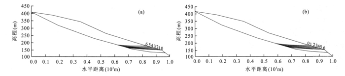 摘要: 三峡水库正常蓄水后, 库水位在175~145m之间周期性波动, 滑坡地下水渗流状态将会发生较大的改变, 可能导致滑坡失稳.因此, 研究库水位周期性波动下滑坡的稳定性具有十分重要的意义.提出了土水特征曲线的多项式约束优化模型和采用饱和-非饱和渗流数值模型.以赵树岭滑坡为例, 利用有限元数值计算了库水位在175~145m之间波动下地下水渗流场, 将计算得到的孔隙水压力用于滑坡的极限平衡分析, 探讨了库水位上升和下降对库岸滑坡稳定性的影响.研究表明: 多项式优化模型可以很好地拟合非饱和土的土水特征曲线; 库水位上升时滑坡稳定性系数总体逐渐增大, 库水位下降时滑坡稳定性系数总体逐渐减小; 无论是库水位上升还是下降到库水位155m时, 其稳定性系数最小; 同一库水位下, 库水位上升时的稳定性系数比下降时的稳定性系数大.Abstract: The water level will periodically fluctuate between 145 and 175m since normal water level storage in Three Gorges reservoir, while the ground water seepage of landslide will be subject to great changes, which may lead to landslide instability. So it is of great significance to study the influence of water level fluctuatation on the bank landslide stability. In this paper, a polynomial constrained optimized model for soil-water characteristic curve is put forward and the saturated-unsaturated seepage flow numerical model is applied. In addition, Zhaoshuling landslide is taken as an example, water seepage fields are simulated by using finite element method with the water level fluctuation between 145 and 175m. The transient pore water pressures are used for limit equilibrium analyses of landslides with taking the effects of suction on shear strength of unsaturated soils into consideration. Then we discuss the effect of the fluctuation of water level in Three Gorges reservoir on the bank landslide stability. The result shows that a polynomial constrained optimized model may well fit the characteristic curve of soil and water of unsaturated soil. The stability coefficient increases gradually in general along with reservoir water level rise and the stability coefficient decreases gradually in general along with the fall of reservoir water level. However, when the reservoir water level reached 155m, whether it rises from 145m or falls from 175m, the stability coefficient is smallest; while the stability coefficient in period of reservoir water level rising from 145m to 175m is larger than that in period of falling from 175m to 145m.