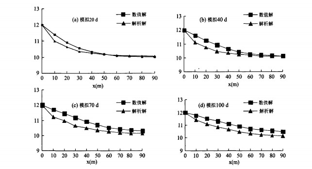 Table 2. comparison of numerical and analytical solutions of mean value of groundwater level