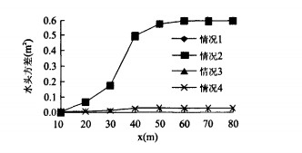 Table 4. Variance variations of water head tO variance variation of stochastic variables