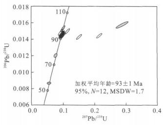 摘要: 昆仑关岩体位于广西南丹-昆仑关燕山期花岗岩带西南端, 岩石类型为黑云母花岗岩.岩相学及化学成分显示其属高钾钙碱性岩系, 具高硅、富碱和铝、低磷和钛的特点, SiO2含量为68.13~72.61, K2O/Na2O比值介于1.28~1.69之间, 铝指数A/CNK=0.72~1.28, 属准铝质一强过铝质岩石.富集Ga、Rb、Th、U、Pb等元素, 而强烈亏损13a、Nb、Sr、P和Ti.稀土元素具明显负Eu异常, 总体呈现轻稀土富集的右倾"V"形配分模式.昆仑关古民单元锆石LA-ICP-MSU-Pb定年结果为93±1Ma, 形成于晚白垩世.矿物组成及地球化学特征确定了南丹-昆仑关花岗岩带是华南西南端一条重要的铝质A型花岗岩带, 控岩断裂构造为NW向南丹一昆仑关深大断裂.岩石学及主量和微量元素(含稀土)特征表明岩体侵位于后碰撞阶段的张性构造环境.结合研究范围在晚白垩世的构造背景及区域应力场匹配组合关系, 认为其与印度板块在该时期北移所引起的古太平洋板块高角度俯冲所导致的弧后拉张有关, 与浙闽沿海A型花岗岩或碱性岩分别代表了匹配构造体制下的两条A型花岗岩带.Abstract: Kunlunguan pluton, located in the southwest part of the Nandan-Kunlunguan granite belt, Guangxi, is mainly composed of biotite granite. Petrography and chemical compositions show that it belongs to high-K calc-alkaline series characterized by high silicon, is enriched in alkali and aluminum but depleted in phosphorus and titanium. Its SiO2 contents range from 68. 13% to 72. 61%, while K2O/Na2O ratios and A/CNK values vary from 1.28 to 1.69 and 0. 72 to 1.28 respectively, ascribed to a suite of met aluminous to intensively peraluminous rock. Ga, Rb, Th, U and Pb elements are enriched in the intrusion while Ba, Nb, Sr, P and Ti depleted. REE is characterized by obvious negative anomalies with Eu/Eu* 0. 53-0. 73 and exhibits right-dipping "V" patterns with LREE enrichment. LA-ICP-MS zircon U-Pb dating yields a weighted mean 206pb/238U age of 93±1 Ma (MSDW=1. 7) for the Gumin unit of the pluton, implying its Late Cretaceous intrusion time. Mineralogy and geochemistry confirm that the Nandan-Kuntunguan granite belt is an important aluminous A-type granite belt in the South China, controlled by northwestward Nandan-Kunlunguan deep fault. Petrology, major and trace el- ement features display that the pluton intruded in a post-collisional extensive tectonic setting. These results, combined with Late Cretaceous tectonic environment and regional stress field matching relationship in the studied area, indicate the A-type granite action is due to back-arc extension related to high angle subduction of the ancient Pacific plate which is caused by Indian plate northward movement. This granite belt and those granite or alkaline rocks in the coastal areas of Zhejiang-Fujian provinces represent the two A-type granite belts under a matching tectonic system.