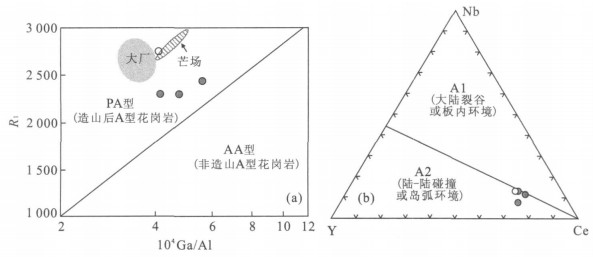 Fig. 4. A-type granite discrimination diagram of Kunlunguan intrusion