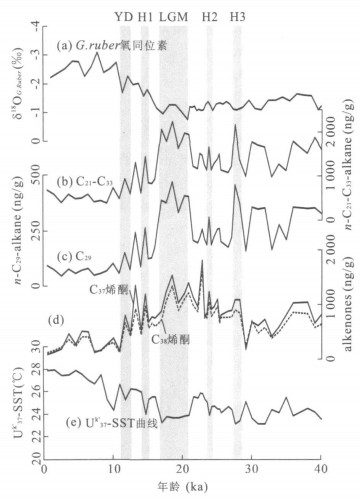 Calvo, E., Villanueva, J., Gri malt, J. O., et al., 2001. New insights into the glacial latitudinal temperature gradients in the North Atlantic: Results from U37k' sea surface temperatures and terrigenous inputs. Earth and Planetary Science Letters, 188(3-4): 509-519. doi: 10.1016/S0012-821X(01)00316-8 CLI MAP Project Members, 1976. The surface of the ice-age Earth. Science, 191(4232): 1131-1137. doi: 10.1126/science.191.4232.1131 Cranwell, P. A., Eglinton, G., Robinson, N., 1987. Lipids of aquatic organisms as potential contributors to lacustrine sediments Ⅱ. Organic Geochemistry, 11(6): 513-527. doi: 10.1016/0146-6380(87)90007-6 Hu, J. F., Peng, P. A., Fang, D. Y., et al., 2003a. No aridity in Sunda Land during the last glaciation: Evidence from the molecular-isotopic stratigraphy of long-chainn-alkanes. Palaeogeography, Palaeoclimatology, Palaeoecology, 201(3-4): 269-281. doi: 10.1016/S0031-0182(03)00613-8 Hu, J. F., Peng, P. A., Jia, G. D., et al., 2003b. A biomarker and isotopic approach for the paleoenvironmental reconstruction Nansha area, South China Sea since the last 30 ka. Acta Sedi mentologica Sinica, 21(2): 211-218(in Chinese with English Abstract). Hu, J. F., Peng, P. A., Jia, G. D., et al., 2002. Biological markers and their carbon isotopes as an approach to the paleoenvironmental reconstruction of Nansha area, South China Sea, during the last 30 ka. Organic Geochemistry, 33(10): 1197-1204. doi: 10.1016/S0146-6380(02)00082-7 Huang, C. Y., Wu, S., Zhao, M., et al., 1997. Surface ocean and monsoon climate variability in the South China Sea since the last glaciation. Marine Micropaleontology, 32(1-2): 71-94. doi: 10.1016/S0377-8398(97)00014-5 Ikehara, M., Kawamura, K., Ohkouchi, N., et al., 2000. Variations of terrestrial input and marine productivity in the southern ocean (48°S) during the last two deglaciations. Paleoceanography, 15: 170-180. doi: 10.1029/1999PA000425 Jia, G. D., Peng, P. A., Zhao, Q. H., et al., 2003. Changes in terrestrial ecosystem since 30 Ma in East Asia: Stableisotope evidence from black carbon in the South China Sea. Geology, 31(12): 1093-1096. doi: 10.1130/G19992.1 Kienast, M., Hanebuth, T. J. J., Pelejero, C., et al., 2003. Synchroneity of meltwater pulse 1a and the boling warming: New evidence from the South China Sea. Geology, 31(1): 67-70. doi: 10.1130/0091-7613(2003)031<0067:SOMPAT>2.0.CO;2 Kienast, M., Steinke, S., Stattegger, K., et al., 2001. Synchronous tropical South China Sea SST change and Greenland warming during deglaciation. Science, 291(5511): 2132-2134. doi: 10.1126/science.1057131 Meyers, P. A., Ishi watari, R., 1993. Lacustrine organic geochemistry—An overviewof indicators of organic matter sources and diagenesis in lake sediments. Organic Geochemistry, 20(7): 867-900. doi: 10.1016/0146-6380(93)90100-P Oppo, D. W., Sun, Y. B., 2005. Amplitude and timing of seasurface temperature change in the northern South China Sea: Dynamic link to the East Asian monsoon. Geology, 33(10): 785-788. doi: 10.1130/G21867.1 Pelejero, C., 2003. Terrigenous n-alkane input in the South China Sea: High-resolution records and surface sediments. Chemical Geology, 200(1-2): 89-103. doi: 10.1016/S0009-2541(03)00164-5 Pelejero, C., Gri malt, J. O., 1997. The correlation between the U37k' index and sea surface temperatures in the warm boundary: The South China Sea. Geochimicaet Cosmochimica Acta, 61(22): 4789-4797. doi: 10.1016/S0016-7037(97)00280-9 Pelejero, C., Gri malt, J. O., Heilig, S., et al., 1999a. Highresolution U37k'-temperature reconstructions in the South China Sea over the last 220 kyrs. Paleoceanography, 14: 224-231. doi: 10.1029/1998PA900015 Pelejero, C., Gri malt, J. O., Sarnthein, M., et al., 1999b. Molecular biomarker record of sea surface temperature and climatic change in the South China Sea during the last 140000 years. Marine Geology, 156(1-4): 109-121. doi: 10.1016/S0025-3227(98)00175-3 Porter, S. C., An, Z. S., 1995. Correlation between climate events in the North Atlantic and China during the last glaciation. Nature, 375: 305-308. doi: 10.1038/375305a0 Sun, X. J., Li, X., 1999. A pollen record of the last 37 ka in deep sea core 17940 from the northern slope of the South China Sea. Marine Geology, 156(1-4): 227-244. doi: 10.1016/S0025-3227(98)00181-9 Sun, X. J., Li. X., Luo. Y. L., et al., 2000. The vegetation and climate at the last glaciation on the emerged continental shelf of the South China Sea. Palaeogeography, Palaeoclimatology, Palaeoecology, 160(3-4): 301-316. doi: 10.1016/S0031-0182(00)00078-X Sun, X. J., Luo, Y. L., 2001. A deep sea pollen record of the last 280 ka in northern South China Sea. Sciencein China(Ser. D), 31(10): 846-853(in Chinese). Sun, X. J., Luo, Y. L., Huang, F., et al., 2003. Deep-sea pollen from the South China Sea: Pleistocene indicators of East Asian monsoon. Marine Geology, 201(1-3): 97-118. doi: 10.1016/S0025-3227(03)00211-1 Ternois, Y., Kawamura, K., Keigwin, L., et al., 2001. A biomarker approach for assessing marine and terrigenous inputs to the sediments of sea of Okhotsk for the last 27000 years. Geochimicaet Cosmochimica Acta, 65(5): 791-802. doi: 10.1016/S0016-7037(00)00598-6 Tian, J., Wang, P. X., 2006. Tropical process and its periodicity in the deep sea records. Earth Science—Journal of China University of Geosciences, 31(6): 747-753(in Chinese with English abstract). Wang, L., Sarnthein, M., Erlenkeuser, H., et al., 1999. East Asian monsoon cli mate during the Late Pleistocene: High-resolution sedi ment records fromthe South China Sea. Marine Geology, 156(1-4): 245-284. doi: 10.1016/S0025-3227(98)00182-0 Wang, P. X., Zhao, Q. H., Jian, Z. M., et al., 2003. The deep sea record in South China Sea since 30 Ma. Chinese Science Bulletin, 48(21): 2206-2215(in Chinese). doi: 10.1360/csb2003-48-21-2206 Wang, P. X., Tian, J., Cheng, X. R., et al., 2004. Major Pleistocene stages in a carbon perspective: The South China Sea record and its global comparison. Paleoceanography, 19: PA4005, doi: 10.