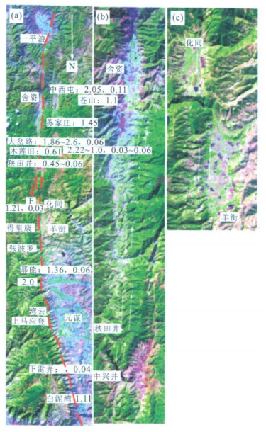 Table 1. Active characteristics of the Yuanmou fault around the phase from Yipinglang to Jiangbian in Late Quaternary
