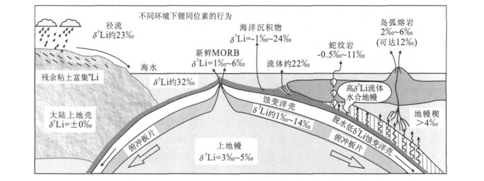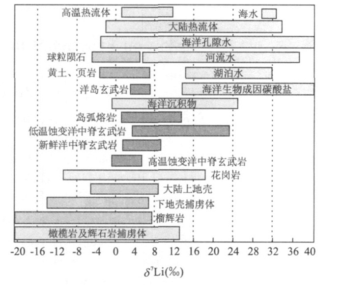 Benton, L. D., Ryan, J. G., Savov, I. P., 2004. Lithiumabun-dance and isotope systematics of forearc serpentinites, Conical Seamount, Mariana forearc: Insights into themechanics of slab-mantle exchange during subduction. Geochemistry Geophysics Geosystems, 5: doi: 10.1029/2004GC000708. Bouman, C., Elliott, T., Vroon, P. Z., 2004. Lithiuminputsto subduction zones. Chem. Geol., 212: 59-79. doi: 10.1016/j.chemgeo.2004.08.004 Brenan, J. M., Neroda, E., Lundstrom, C. C., et al., 1998a. Behaviour of boron, beryllium and lithium during melt-ing and crystallization: Constraints from mineral-meltpartitioning experiments. Geochim. Cosmochim. Acta, 62: 2129-2141. doi: 10.1016/S0016-7037(98)00131-8 Brenan, J. M., Ryerson, F. J., Shaw, H. F., 1998b. The roleof aqueous fluids in the slab-to-mantle transfer of bo-ron, beryllium, and lithium during subduction: Experi-ments and models. Geochim. Cosmochim. Acta, 62: 3337-3347. doi: 10.1016/S0016-7037(98)00224-5 Chan, L. H., 1987. Lithiumisotope analysis by thermal ioni-zation mass spectrometry of lithiumtetraborate. Anal. Chem., 59: 2662-2665. doi: 10.1021/ac00149a007 Chan, L. H., Alt, J. C., Teagle, D. A. H., 2002a. Lithiumandlithium isotope profiles through the upper oceaniccrust: Astudy of seawater-basalt exchange at ODP Sites504B and896A. Earth Planet. Sci. Lett. , 201: 187-201. doi: 10.1016/S0012-821X(02)00707-0 Chan, L. H., Edmond, J. M., 1988. Variation of lithium isotope composition in the marine environment: A preliminaryreport. Geochim. Cosmochim. Acta, 52: 1711-1717. doi: 10.1016/0016-7037(88)90239-6 Chan, L. H., Edmond, J. M., Thompson, G., 1993. A lithiumisotope study of hot-springs and metabasalts from midoceanridge hydrothermal systems. Journal of GeophysicalResearch (Solid Earth), 98 (B6): 9653-9659. doi: 10.1029/92JB00840 Chan, L. H., Edmond, J. M., Thompson, G., et al., 1992. Lithium isotopic composition of submarine basalts: Implications for the lithium cycle in the oceans. EarthPlanet. Sci. Lett., 108 (1-3): 151-160. doi: 10.1016/0012-821X(92)90067-6 Chan, L. H., Frey, F. A., 2003. Lithiumisotope geochemis-try of the Hawaiian plume: Results from the HawaiiScientific Drilling Project and Koolau volcano. Geochem. Geophys. Geosyst., 4 (3): doi: 10.1029/2002GC000365. Chan, L. H., Gieskes, J. M., You, C. F., et al., 1994a. Lithi-umisotope geochemistry of sediments and hydrothermalfluids of the Guaymas basin, Gulf of California. Geochim. Cosmochim. Acta, 58 (20): 4443-4454. doi: 10.1016/0016-7037(94)90346-8 Chan, L. H., Gieskes, J. M., You, C. F., et al., 1994b. Lithi-umisotope geochemistry of sediments and hydrothermalfluids of the Guaymas basin, Gulf of California. Geochim. Cosmochim. Acta, 58: 4443-4454. doi: 10.1016/0016-7037(94)90346-8 Chan, L. H., Kastner, M., 2000. Lithiumisotopic composi-tions of pore fluids and sediments inthe Costa Rica sub-duction zone: Implications for fluid processes and sedi-ment contribution to the arc volcanoes. Earth Planet. Sci. Lett., 183: 275-290. doi: 10.1016/S0012-821X(00)00275-2 Chan, L. H., Leeman, W. P., You, C. F., 2002b. Lithiumiso-topic composition of Central American volcanic arc la-vas: Implications for modification of subarc mantle byslab-derived fluids: Correction. Chem. Geol., 182: 293-300. doi: 10.1016/S0009-2541(01)00298-4 Chaussidon, M., Robert, F., 1998. 7Li/6Li and11B/10B varia-tions in chondrules fromthe Semarkona unequilibrated chondrite. Earth Planet. Sci. Lett., 164: 577-589. doi: 10.1016/S0012-821X(98)00250-7 Coogan, L. A., Kasemann, S. A., Chakraborty, S., 2005. Rates of hydrothermal cooling of new oceanic uppercrust derived from lithium-geospeedometry. EarthPlanet. Sci. Lett., 240: 415-424. doi: 10.1016/j.epsl.2005.09.020 Crank, J., 1975. The mathematics of diffusion. ClarendonPress, Oxford, 1-414. Decitre, S., Deloule, E., Reisberg, L., et al., 2002. Behaviourof Li and its isotope during serpentinization of oceanicperidotites. Geochem. Geophys. Geosyst., 3 (1): doi: 10.1029/2001GC000187. Elliott, T., Jeffcoate, A., Bouman, C., 2004. The terrestrialLi isotope cycle: Light-weight constrains on mantle con-vection. Earth Planet. Sci. Lett., 220: 231-245. doi: 10.1016/S0012-821X(04)00096-2 Elliott, T., Thomas, A., Jeffcoate, A., et al., 2006. Lithiumiso-tope evidence for subduction-enriched mantle in the sourceof mid-ocean-ridge basalts. Nature, 443: 565-568. doi: 10.1038/nature05144 Flesch, G. D., Anderson Jr., A. R., Svec, H. J., 1973. Asec-ondaryisotopic standard for6Li/7Li determinations. In-ternational Journal of Mass Spectrumetry and IonProcesses, 12 (3): 265-272. Foustoukos, D. I., James, R. H., Berndt, M. E., et al., 2004. Lithiumisotopic systematics of hydrothermal vent flu-ids at the Main Endeavour Field, Northern Juan de FucaRidge. Chem. Geol., 212 (1-2): 17-26. doi: 10.1016/j.chemgeo.2004.08.003 Hoefs, J., Sywall, M., 1997. Lithiumisotope composition ofQuaternary and Tertiary biogene carbonates and a glob-al lithiumisotope balance. Geochim. Cosmochim. Acta, 61: 2679-2690. doi: 10.1016/S0016-7037(97)00101-4 Huh, Y., Chan, L. H., Edmond, J. M., 2001. Lithium iso-topes as a probe of weathering processes: Orinoco river. Earth Planet. Sci. Lett., 194: 189-199. doi: 10.1016/S0012-821X(01)00523-4 Huh, Y., Chan, L. H., Zhang, L., et al., 1998. Lithium andits isotopes in major world rivers: Implications forweathering and the oceanic budget. Geochim. Cosmo-chim. Acta, 62 (12): 2039-2051. doi: 10.1016/S0016-7037(98)00126-4 Jambon, A., 1980. Isotopic fractionation: A kinetic model forcrystals growing from magmatic melts. Geochim. Cos-mochim. Acta, 44 (9): 1373-1380. doi: 10.1016/0016-7037(80)90096-4 James, R. H., Pal mer, M. R., 2000. The lithiumisotope com-position of international rock standards. Chem. Geol., 166: 319-326. doi: 10.1016/S0009-2541(99)00217-X James, R. H., Rudnicki, M. D., Pal mer, M. R., 1999. The al-kali element and boron geochemistry of the Escanabatrough sediment-hosted hydrothermal system. EarthPlanet. Sci. Lett., 171 (1): 157-169. doi: 10.1016/S0012-821X(99)0014