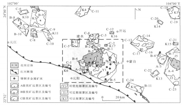Table 2. Schedule of preferable ore-finding areas in Gejiu, China