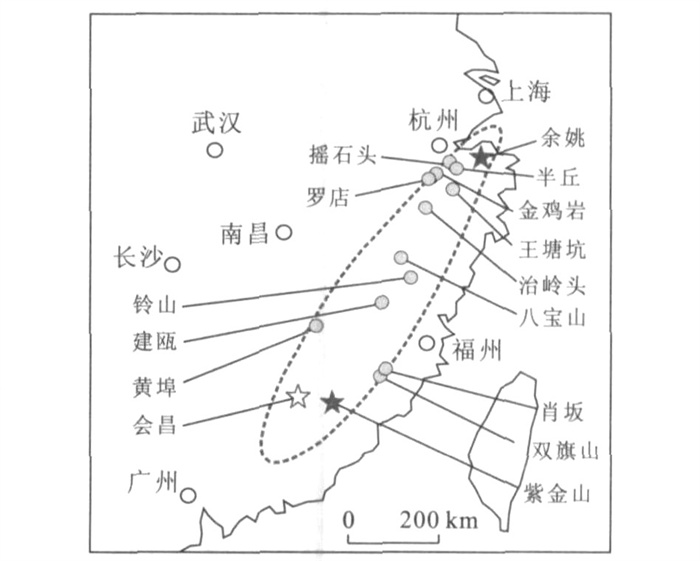 Fig. 7. Distribution of adakites and gold-deposits in Zhejiang-Fujian Mountains