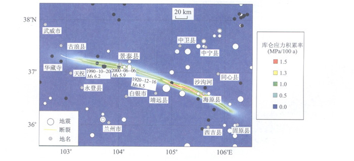 Charles, G., 2006. Coulomb stress transfer and tectonic load-ing preceding the2002Denali fault earthquake. Bull. Seismol. Soc. Am., 96: 1662-1674. doi: 10.1785/0120050007 Deng, Q. D., 1982. Active faults in China. Seismic Press, Beijing (in Chinese). Ding, G. Y., Chen, J., Tian, Q. J., et al., 2004. Active faultsand magnitudes of left-lateral displacement along thenorthern margin of the Tibetan plateau. Tectonophys-ics, (380): 243-260. http://www.ingentaconnect.com/content/el/00401951/2004/00000380/00000003/art00010 Fu, Z. X., Liu, G. P., Chen, Q. F., 2001. Dynamic analysis oninteraction betweenthe Haiyuan-Gulang-Changma greatearthquake in the north boundary of the Tibetan plat-eau. Seismology and Geology, 23 (1): 35-42 (in Chi-nese with English abstract). http://www.researchgate.net/publication/291825082_Dynamic_analysis_on_interaction_between_the_Haiyuan-Gulang-Changma_great_earthquake_in_the_north_boundary_or_the_Tibetan_plateau Gan, W. J., Cheng, P. G., Zhou, D. M., 2005. Observation of aGPS profile across main faults on northeast margin ofTibetan plateau and data analysis. Seismology and Geolo-gy, 27 (2): 178-187 (in Chinese with English abstract). He, W. G., Liu, B. C., Lü, T. Y., et al., 1994. Study on the segmentation of Laohushan fault zone. Northwestern Seismologic Journal, 16 (3): 66-72 (in Chinese withEnglish abstract). http://qikan.cqvip.com/Qikan/Article/Detail?id=1512887 He, W. G., Liu, B. C., Yuan, D. Y., et al., 2000. Research onslip rates of the Lenglongling active fault zone. North-western Seismologic Journal, 22 (1): 90-97 (in Chi-nese with English abstract). http://www.wanfangdata.com.cn/details/detail.do?_type=perio&id=xbdzxb200001017 He, W. G., Liu, B. C., Yuan, D. Y., et al., 1996. The Qua-ternary active characteristic of Maomaoshan fault. In: Study of Haiyuanfault zone. Science press, Beijing, 63-77 (in Chinese). Herring, T. A., 2006. Global Kal man filter VLBI and GPSanalysis program, version4.10. Massachusetts Instituteof Technology, Cambridge. Institute of Geology, China Earthquake Administration, Ningxia Earthquake Administration, 1990. Haiyuan ac-tive fault zone. Earthquake Press, Beijing (in Chinese). King, G. C. P., Stein, R. S., Lin, J., 1994. Static stress chan-ges and the triggering of earthquakes. Bull. Seismol. Soc. Am., 84 (3): 935-953. http://www.onacademic.com/detail/journal_1000033975393010_b010.html King, R. W., Bock, Y., 2006. Documentation for the GAMITGPS analysis software, version10.3. Massachusetts In-stitute of Technology, Cambridge. Lasserre, C., Bukchin, B., Bernard, P., et al., 2001. Sourceparameters and tectonic origin of the1996June1Tianzhu (Mw=5.2) and1995July21Yongden (Mw=5.6) earthquakes near the Haiyuan fault (Gansu, China). Geophy. J. Int., 144 (1): 206-220. doi: 10.1046/j.1365-246x.2001.00313.x Lasserre, C., Morel, P. H., Gaudemer, Y., et al., 1999. Postglacial left slip rate and past occurrence of M > 8earth-quakes on the western Haiyuan fault (Gansu, China). J. Geophys. Res., 104 (B8): 17633-17652. doi: 10.1029/1998JB900082 Lasserre, C., Gaudemer, Y., Tapponnier, P., et al., 2002. Fast Late Pleistocene slip rate on the Leng Long Lingsegment of the Haiyuan fault, Qinghai, China. J. Geo-phys. Res., 107 (B11): 1-15. Li, S. L., Zhang, X. K., Zhang, C. K., et al., 2001. Study oncrust structure of haiyuan strong earthquake region. Earthquake Researchin China, 16-23 (in Chinese withEnglish abstract). http://epub.cnki.net/grid2008/docdown/docdownload.aspx?filename=ZGZD200101002&dbcode=CJFD&year=2001&dflag=pdfdown Liu, J., Xu, X. W., Li, Y. F., et al., 2007. On the complete-ness of paleoseismic records of strike-slip faults: An ex-ample from the Laohushan segment of the Haiyuanfault in Gansu, China, with a discussion of several prob-lems in the paleoearthquake study. Geological Bulletinof China, 26 (6): 650-660 (in Chinese with Englishabstract). http://www.researchgate.net/publication/288595700_On_the_completeness_of_paleoseismic_records_of_strike-slip_faults_an_example_from_the_Laohushan_segment_of_the_Haiyuan_fault_in_Gansu_China_with_a_discussion_of_several_problems_in_the_paleoearthquake Matsu ura, M., Jackson, D. D., Cheng, A., 1986. Dislocation model for aseismic crustal deformation at Hollister, Cal-ifornia. J. Geophy. Res., 91 (B12): 12661-12674. doi: 10.1029/JB091iB12p12661 Okada, Y., 1985. Surface deformation due to shear and ten-sile faults in a half-space. Bull. Seismol. Soc. Am., 75 (4): 1135-1154. doi: 10.1785/BSSA0750041135 Okada, Y., 1992. Internal deformation due to shear and ten-sile faults in a half-space. Bull. Seismol. Soc. Am., 82 (2): 1018-1040. doi: 10.1785/BSSA0820021018 Parsons, T., 2006. Tectonic stressing in California modeledfrom GPS observations. J. Geophys. Res., 111 (b03407): 1-16. http://www.researchgate.net/profile/Tom_Parsons9/publication/228675103_Tectonic_stress_in_California_modeled_from_GPS_observations/links/5ba1887592851ca9ed14b293/Tectonic-stress-in-California-modeled-from-GPS-observations.pdf Parsons, T., Yeats, R. S., Yagi, Y., et al., 2006. Static stresschange from the8October, 2005M=7.6Kashmirearthquake. Geophys. Res. Lett., 33 (L06304): 1-4. Ran, H. L., 2004. Earthquake probabilities and magnitude distribution (m≥6.7) along the Haiyuan fault, north-western China. Acta Seismologica Sinica, 26 (6): 609-615 (in Chinese with English abstract). http://www.cnki.com.cn/Article/CJFDTotal-DZXY200406005.htm Ran, Y. K., Deng, Q. D., 1998. Paleoearhquakes alongHaiyuan fault and discussion of grading on rupture oflarge earthquakes. Quaternary Sciences, (3): 271-278 (in Chinese with English abstract). http://en.cnki.com.cn/Article_en/CJFDTOTAL-DSJJ199803010.htm Savage, J. C., Smpson, R. W., 1997. Surface strain accumula-tion and the seismic moment tensor. Bull. Seismol. Soc. Am., (8): 1345-1353. http://www.openseismo.org/contributors/Lee/MoWorking_Backups/Mo2012_0424backup/MoWorking_DONE/Papers_NotUsed_DONE/0_Theory/651_S&S97_Savage&Simpson_BSSA1997_p1345.pdf Shi, Y. L., 1992. Some application of gene