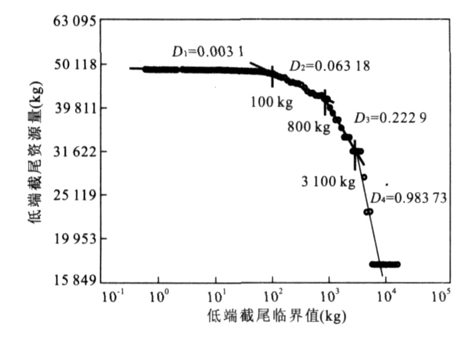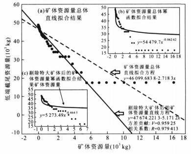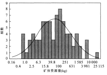 摘要: 大水金矿床是著名的超大型矿床.在借鉴前人矿床地质研究成果的基础上, 通过对矿体规模数据的多重分形特征及吨-品位关系研究, 揭示了成矿过程中资源量生长的数量规律.矿体长度服从简单分形分布, 矿床资源量的吨-品位关系能用指数函数或直线方程更好地拟合, 矿床与矿体资源量双对数图、吨-品位的双对数图的多重分形特征表明: 在分形构造成矿空间中, 特定成矿阶段的矿床资源量的生长方式是自组织非线性增殖过程, 与自组织有关的随机性使吨-品位关系趋于指数关系; 在整个成矿过程中, 矿床资源量的生长方式是各阶段矿体资源量的线性叠加.进一步根据熵最大化原理及效用理论导出了与统计结果吻合的矿床吨-品位方程, 并得到柴家庄金矿矿体地质数据的验证.Abstract: Dashui gold deposit boasts its superlarge size.Based on the previous geological research, the quantitative regulation of resource growth has been revealed by studying the multifractals and grade-tonnage relation from geological data of ore-bodies.The ore-body lengths are subjected to single fractal distribution, while tonnages vs grades relation can be better fitted to the exponential function or linear function.With the multifractal characteristics of double-logarithmic chart of tonnages vs grades and tonnage vs orebody resources, all the above show that, in the fractal metallogenic structure space, the growth of mineral resources in specific metallogenic phase was a nonlinear proliferation process related to self-organized optimization and its random makes the relation of tonnage vs grades tend to be exponential function, and the whole metallogenic process was the linear addition of multi-phase ore-body resources.Furthermore, the tonnage vs grade equations consistent with statistics were found by the maximal entropy and the utility theory and verified by the orebody geological data of Chaijiazhuang gold deposit.