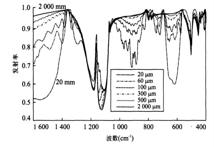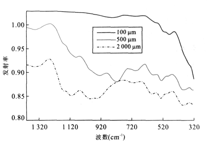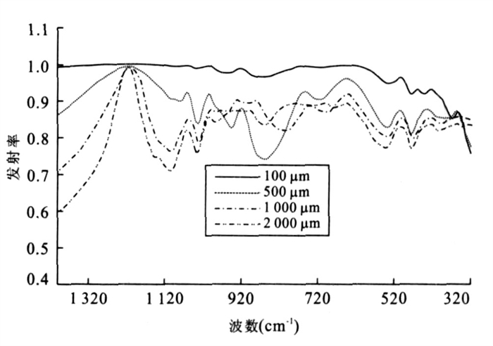 Fig.  5.  Calculated muscovite emissivity of different granularities