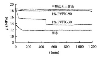 摘要: 在海底含天然气水合物地层钻进时, 水合物的分解和进入泥浆循环系统的天然气重新生成水合物是影响钻井安全的主要因素.为获得确保在水合物地层安全钻进的钻井液, 利用“天然气水合物模拟实验系统”研究评价: 粘土对甲酸盐钻井液低温流变性的影响、甲酸盐无土钻井液的低温流变性和动力学抑制剂PVPK-30、PVPK-90的水合物抑制效果.表明: 加入粘土的甲酸盐钻井液在低温条件下粘、切增长较快; 甲酸盐无土钻井液在低温条件下, 流变参数变化不大; 在-4℃和18MPa附近压力的实验条件下, PVPK-90抑制性能优于PVPK-30;加入1%PVPK-90的甲酸盐无土钻井液抑制效果良好.Abstract: When drilling in marine gas hydrate bearing sediments, the decomposition of gas hydrate and the entering of the released gas into the mud circulating system and reforming gas hydrate are key factors that affect the safety of drilling operation. In order to develop a drilling fluid that can ensure safe drilling, the authors utilized the natural gas hydrate simulation experimental system, and evaluated the effect of bentonite on the rheological property of formate drilling fluid at low temperature, the rheological property of formate drilling fluid without bentonite at low temperature, and the performance of kinetic hydrate inhibitor PVPK-30 and PVPK-90.The experiment indicates that with the addition of bentonite, the viscosity and shearing force of formate drilling fluid increase rapidly at low temperature while the formulation without bentonite has a steady rheological parameter at the same circumstances. At the temperature of -4℃ and pressure of 18MPa, PVPK-90 has better performance than PVPK-30, and an addition of 1% wt of PVPK-90 in formate drilling fluid can effectively inhibit the formation of gas hydrate.