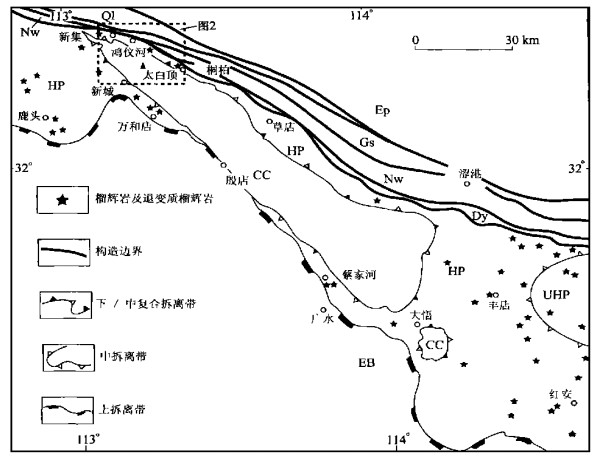Fig. 2. Structural map of the high-pressure metamorphic belt from the Tongbai mountains (see