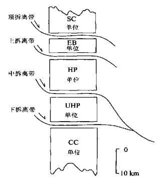 摘要: 桐柏山是秦岭-大别山造山带的重要组成部分.新近的构造学和岩石学详细研究表明, 该区广泛分布有大量的、大小不一的榴辉岩及退变质榴辉岩块体, 构成一个延展长约200 km和宽约40 km的高压变质带.由榴辉岩或退变质榴辉岩、遭受过高压变质作用的沉积和火山岩、由榴辉岩退变质而成的片麻岩和片岩、以及面理化的含榴或不含榴的花岗岩组成的高压变质单位(HP), 在组成及变质演化特征方面, 均与大别—苏鲁地区的高压单位类似.构造上, 显示一典型的西北美型变质核杂岩.分隔开由桐柏杂岩组成的核部杂岩单位(CC)及上覆的高压单位的km尺度的伸展拆离带, 具有下和中伸展拆离带的复合性质, 是在高压变质作用期后伸展体制下形成的.桐柏山高压变质带是与大别山地区的高压变质带相联接的, 据其岩石学、构造学及相关的主要构造边界展布特征, 推测该高压变质带穿过南襄盆地有继续向东秦岭延伸的趋势.桐柏山高压变质带是东秦岭造山带与大别—苏鲁超高压和高压变质带间的构造纽带.Abstract: The Tongbai Mountains is an important component part of the Qinling-Dabieshan orogenic belt. The recent detailed researches in tectonics and petrology show that a great amount of eclogites or retrograded eclogites in different sizes, widely distributed in the Tongbai mountains, constitutes a high-pressure metamorphic belt, around 200 km long and 40 km wide. The high-pressure metamorphic unit is generally composed of the following four different major lithologies: (1) eclogites and retrograded eclogites; (2) HP-metamorphosed sedimentation and volcanic rocks; (3) gneissic or schistose rocks resulting from retrogressive HP eclogites; and (4) foliated garnet-bearing granites or garnet-free granites. The rock assemblages and metamorphic evolution of this high-pressure unit are similar to those in the Dabie-Sulu ultrahigh pressure (UHP) and high-pressure metamorphic belts. The regional structural pattern of the HP metamorphic belt in the Tongbai Mountains corresponds perfectly to a Cordilleran-type metamorphic core complex where three crustal-scale, gently-dipping, normal-sense detachment zones were developed. The composite detachment zone resulted possibly from both the lower detachment zone and the middle detachment zone is presently sandwiched between the core complex unit (CC) below, and the high-pressure metamorphic unit (HP) above. The structures controlling the present spatial distribution of HP metamorphic rocks were dominantly products of an extensional process following the Triassic HP metamorphism. Both structural considerations and concordant field relations suggest that the Tongbai HP metamorphic unit is an important part of the Dabie-Sulu UHP and HP metamorphic belts. Its western extension overlain by the Mesozoic to Cenozoic sedimentary rocks may have crossed the Nanxiang basin to the Eastern Qinling. The new findings and ideas should be employed for the reconstruction of the evolution of the whole Qinling-Dabie orogenic belt. The Tongbai high-pressure metamorphic belt serves as a structure linking the Eastern Qinling orogen with the Dabie-Sulu UHP and HP metamorphic belts.